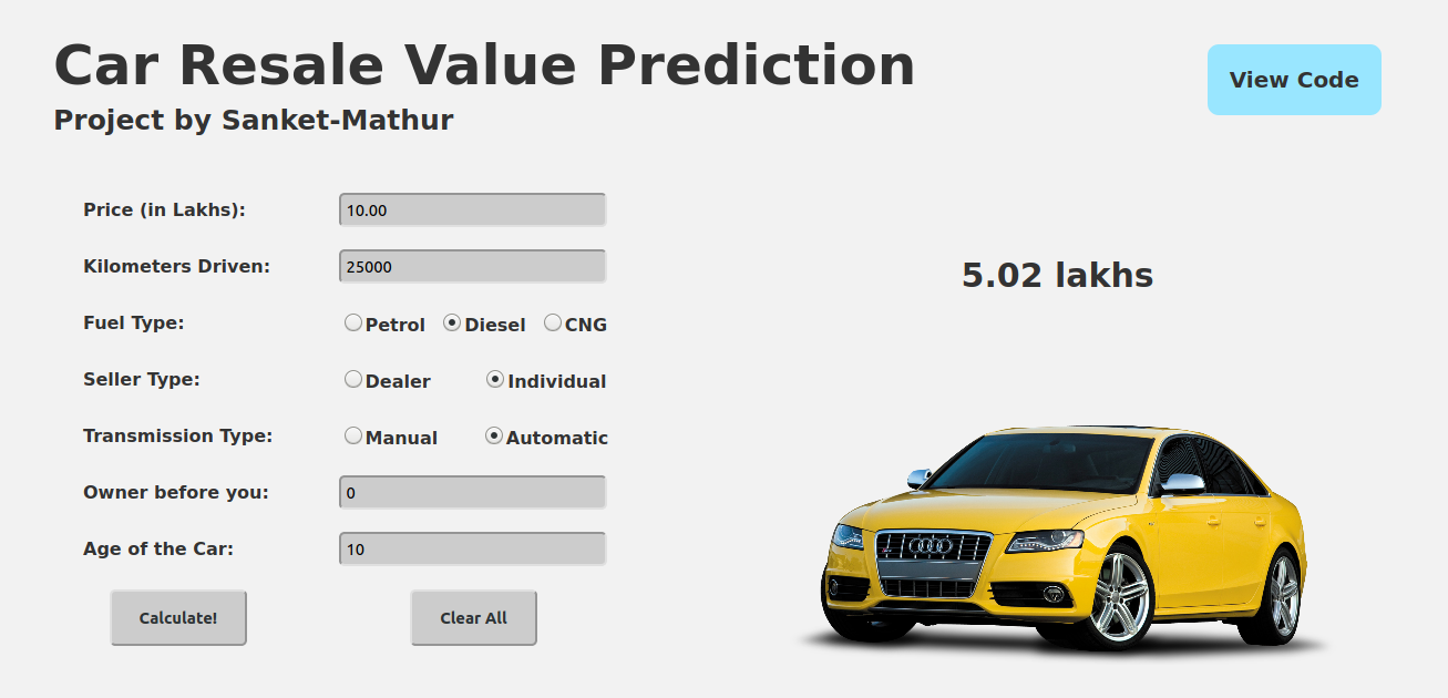 In this project we have used different algorithms with different techniques for developing Car resale value prediction systems considering different features of the car. In a nutshell, car resale value prediction helps the user to predict the resale value of the car depending upon various features like kilometers driven, fuel type, etc.